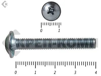 Винты с плоской головкой. Метизы используются при производстве мебели, декоративных и несущих конструкций. С их помощью фиксируются детали из ДВП, ДСП, массива. Возможна работа с металлическими заготовками, в частности фурнитурой, усиливающими уголками, стяжками.